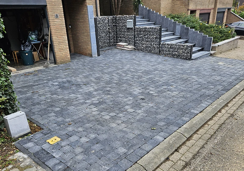La pierre bleue, emblématique de la région, occupe une place particulière dans ses réalisations : pavages, bordures, murets, terrasses ou finitions décoratives. Ce matériau noble, durable et intemporel illustre parfaitement la philosophie de l'entreprise : allier design, robustesse et respect des techniques traditionnelles.